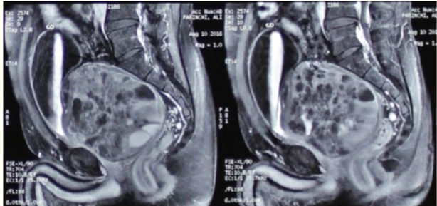 Figure 1: MRI of abdominopelvic. Reproduced from: [9] https://www.ncbi.nlm.nih.gov/pmc/articles/PMC5847134/ Under the Creative Commons Attribution License. Under Copyright: under copyright: Droit d'auteur © Mojtaba Ameli et al. The Pan African Medical Journal - ISSN 1937-8688. This is an Open Access article distributed under the terms of the Creative Commons Attribution License which permits unrestricted use, distribution, and reproduction in any medium, provided the original work is properly cited.