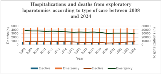This is an observational, retrospective, and descriptive study based on secondary data extracted from the SUS Hospital Information System (SIH/SUS), available in the DataSUS database, relating to hospital procedures in Brazil between 2008 and 2024, by admission location, related to exploratory laparotomy.