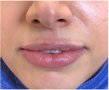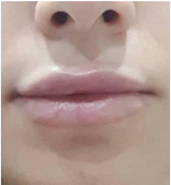 A 25-year-old female attended our clinic for a lip augmentation procedure. The patient had no past medical history, drug history, allergic history, or any remarkable family history. (fig.1) 1cc Perfectha Deep lip filler was injected for this patient. (fig. 2) 2 months after the injection, the patient decided to apply for the Sinopharm COVID-19 vaccine. Prior to the injection, the patient had no adverse reaction to the filler. (fig. 3) 24 hours following the COVID- 19 vaccine, the patient showed signs of swelling in her lips with nodularities and a burning sensation at the site of lip injection. (fig. 4) The patient attended our clinic seeking help for the condition.