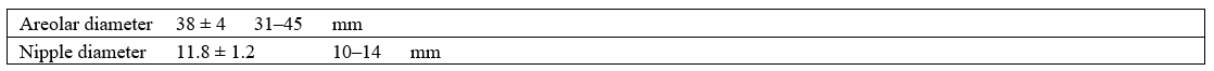 Breast volume (functional glandular tissue, MRI-based est.) 520 ± 85 400–680 Ml