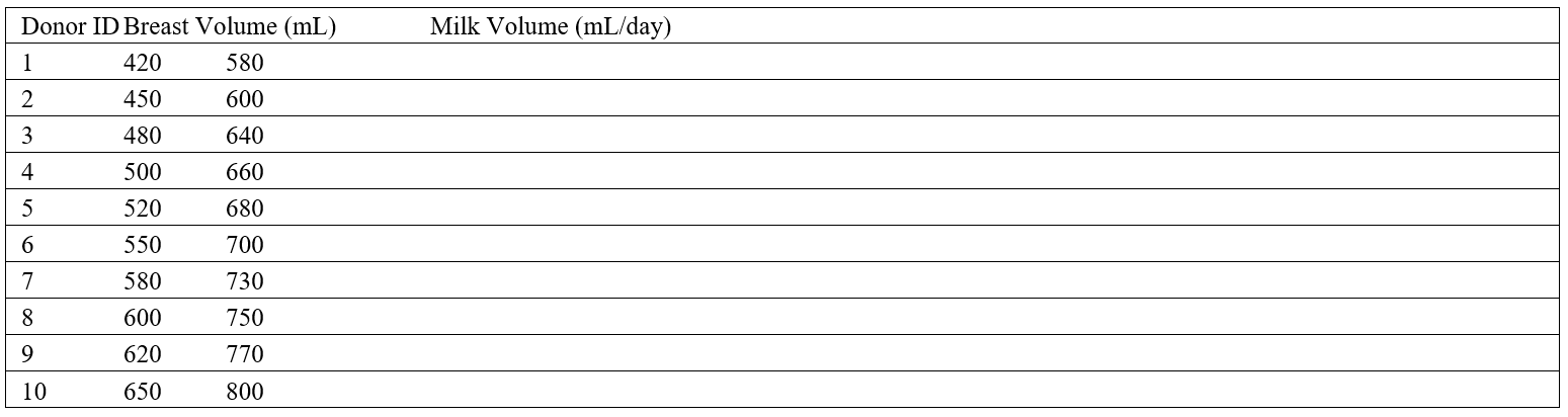Figure 2: Correlation Between Breast Volume and Milk Output