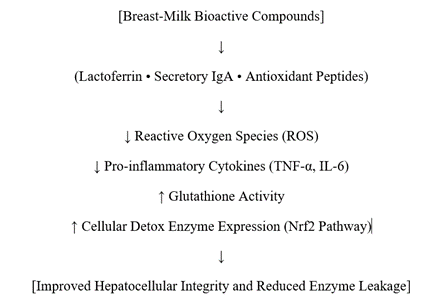 Results: The model demonstrated significant reductions in alanine aminotransferase (ALT), aspartate aminotransferase (AST), and total bilirubin following exposure to the bioactive compound mixture. Conclusion: Bioactive compounds in breast milk may have protective effects on hepatocellular integrity through antioxidant and immune-regulatory mechanisms. Further biochemical and clinical studies are warranted.