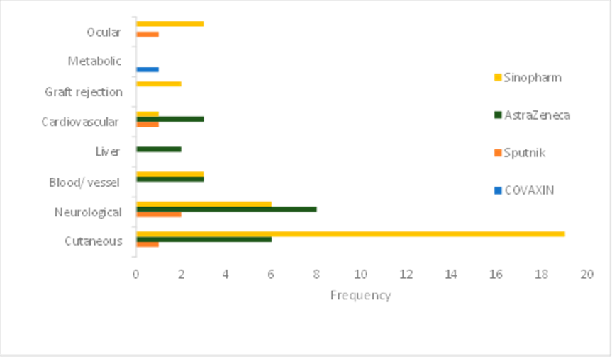 Massive vaccination campaigns have been launched Since December 2020, applying mRNA vaccines and also the viral vector-based vaccine as well as inactivated viral-based and recombinant protein vaccines. By the end of January 2023, more than 5 billion individuals were fully vaccinatedThus, there is an increasing rate of reports over the adverse events associated with the administrated vaccines in real world. General symptoms which have been normally screened includes weakness, fever/chills, body pain, headache and local injection-site reactions. These symptoms are usually transient and do not normally need to be treated with specific medicine care. Herein, we discussed 64 cases who experienced unsolicited events after vaccinating against COVID-19. The applied vaccines included viral-vector and inactivated virus-based vaccines. We tried to select the case reports with new onset of the symptoms in whom the pre-existing comorbidity was not as same as the triggered adverse events. Various disorders were captured induced by different vaccines suggesting that the type of a specific regimen is not the only factor in outcomes. Moreover, there is not enough clues to support the triggered manifestations and their association with the applied vaccine. However, the healthy individuals who did not have any remarkable medical history and experienced serious events suggest that this potency of COVID-19 vaccine must be considered. The common adverse events of AstraZeneca vaccine were pain at the injection site, fever, lethargy, muscle pain and headache which were mostly screened after the first dose of vaccine . Moreover, irritability, nausea, myalgia, and chills some hours after vaccination with AZD1222 were reported in Nepal .In addition to common adverse events, severe disorders were captured as postural drop in blood pressure, abdominal cramps, syncope and urticaria Fever/chills, general discomfort, headache arthralgia, myalgia, asthenia, tenderness were among the common side effects following Sputnik V COVID-19 Vaccine which seemed to be more frequents after the second dose ,In this review, we found that AstraZeneca mostly led to neurological incidences including encephalopathy ,acute vestibular neuritis and Guillain-Barre syndrome . Although the safe administration of vaccines is a crucial factor many unusual events following AstraZeneca vaccine have been reported. The Concern about neurological abnormalities regarding COVID-19 vaccines firstly rose in 2020 when some cases of Guillain-Barré syndrome and transverse myelitis were screened post-Oxford/AstraZeneca vaccine . Furthermore, in the investigated cases in this review, AstraZeneca has been the only cause of liver disorder in forms of Fulminant hepatitis and acute liver failure which led to death in both cases. Liver injury following COVID-19 vaccination is also investigated in a systematic review on individuals who got to Moderna (mRNA)– 1273, Pfizer-BioNTech BNT162b2 mRNA or ChAdOx1 nCoV-19 vaccine. Nevertheless, in those cases, pre-existing comorbidities was common as 69.6% such as liver disease. The mortality rate due to live disorders was reported 4.3%. According to conducted studies in China, inactivated viral-based vaccines led to adverse events including injection site pain, lethargy and muscle pain 15.6?ter the first and 14.6?ter the second dose among the healthcare workers. The most common is pain at the injection site, followed by fatigue, muscle pain, and headache. Furthermore, two serious events as multiple sclerosis and emesis were also recorded with hospitalization requirement .In the present review, Sinopharm vaccine resulted in corneal graft rejection in to cases a week after the first dose of injection .In a study by Shah AP et al., four cases with a history of keratoplasty developed rejection after being vaccinated with mRNA-1273. This incidence has also been reported after adenovirus vector (AZD1222) and mRNA (BNT162) vaccines .A systematic review also showed that Cornea rejection was the most reported organ rejection after vaccination against COVID-19, followed by kidney and liver rejections .Dermal abnormalities have been the most frequent reported incidences after Sinopharm vaccine among which new-onset lichen planus (LP) was observed in 6 cases . Nevertheless, rare conditions were also screened such as Toxic Epidermal Necrolysis , Morphea and Pemphigus vulgaris . Notably, of 28 skin disorders in the reported cases from Iran, 20 cases got Sinopharm vaccine. The other study from Iran evaluated the cutaneous reactions post-COVID-19 vaccination which presented that most of the individuals showed symptoms after injection of AstraZeneca, Sinopharm, Sputnik V, and COVAXIN vaccines .Herpes zoster has been reported in case series and has also been documented in the Center of Disease Control following COVID-19 vaccines (VAERS). There are more than 1000 cases with mRNA vaccine-triggered herpes zoster in VAERS, mostly aged over 60. We also found a reported case of Herpes Zoster in a 60-year-old healthy woman 6 days after the first dose of Sinopharm vaccine.It has been suggested that molecular mimicry between the human components and vaccine- induced proteins could lead to pathological autoantibodies generation and hence, autoimmunity accordingly .Neurological disorders also counted a quarter of the investigated cases mostly with Guillain– Barré syndrome and Bell’s palsy caused by AstraZeneca, Sinopharm and Sputnik vaccines. Although the most incidences were captured post-first dose, a 60-year-old man presented Guillain– Barré syndrome 20 days after the Sinopharm booster shot. The correlation between Bell’s palsy and vaccinations has been introduced previously such as influenza H1N1 monovalent vaccine and intranasal inactivated influenza vaccine .Similar to other unknown mechanisms of vaccine induced problems, precise pattern of neurologic disorders is still under question. Some hypothetical thoughts though propose that a