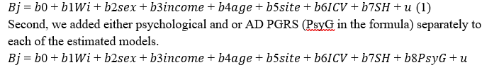 We estimated the polygenic risk score (PGRS) for each participant with available genomic data, using LDPred227 with default settings. As input for the PGRS, we used the summary statistics from a recent genome-wide association study (GWAS) of Alzheimer’s Disease (AD),28 using a minor allele frequency of 0.05. We selected AD PGRS as it is based on a well-powered GWAS28 and has, as the most common neurodegenerative disease, real-world applicability, particularly considering the examined ageing sample. A previous study also presented relatively strong associations between a PGRS of late onset AD and brain structure.29