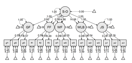 The structural analysis explains the relationships between the indicators and the first- and second-order factors in the model (see Fig. 2). The findings support a five-factor structure with its corresponding three indicators for each, adding up to a total of 15 factors out of the 21 possible and the seven factors reported in the literature.