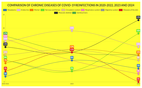 Figure 2: Comparison Of Chronic Diseases Of Covid-19 Reinfections In 2020-2022, 2023 And 2024