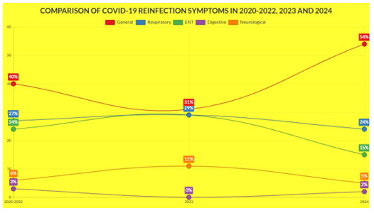 Figure 3: Comparison Of Covid-19 Reinfection Symptoms In 2020-2022, 2023 And 2024