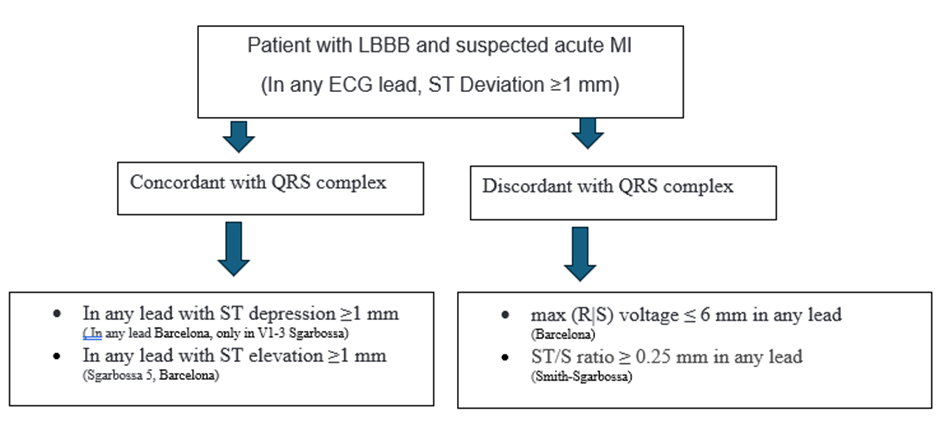 - Confirm diagnosis of LBBB. If yes go to 2nd step