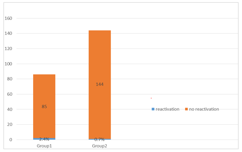 Figure 2: The prevalence of reactivation of Hepatitis B in the studied groups.