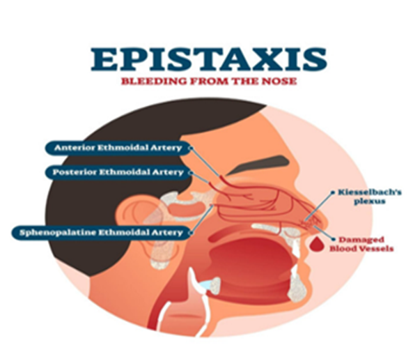 Epistaxis, commonly known as a nosebleed, occurs when blood vessels in the nose rupture. It can result from various factors, including dry air, trauma, or underlying health conditions. While usually harmless, severe or recurrent nosebleeds may indicate an underlying issue. Adequate hydration, humidification, and gentle nasal care can help prevent epistaxis. if nosebleeds persist or are frequent, a healthcare professional must be consulted [5].