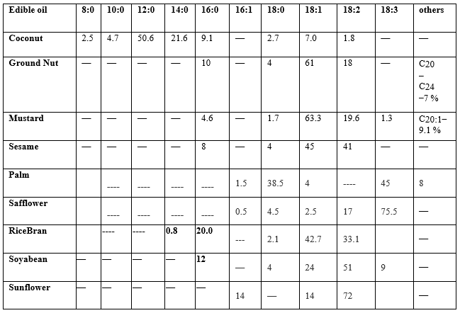 Table 1 - Percentage fatty acid composition of commonly used edible oi