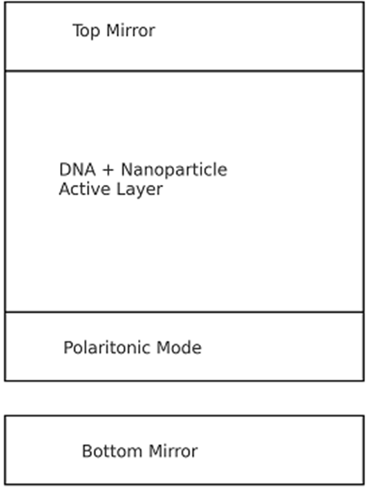 Figure 1: Conceptual schematic of polariton-based DNA computing with complementary-color optical regulation.