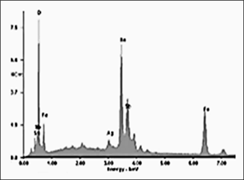 Additionally, energy dispersive X-ray spectroscopy (EDX) graphs for Ag-Fe3O4 NPs are presented in Figure 2. In the latter, the signal corresponding to Ag appears in the plot. A BET test was carried out to determine the contact surface area of the adsorbent, giving a value equal to 116.476 m2/g, and a correlation coefficient for the BET isotherm of 0.999.