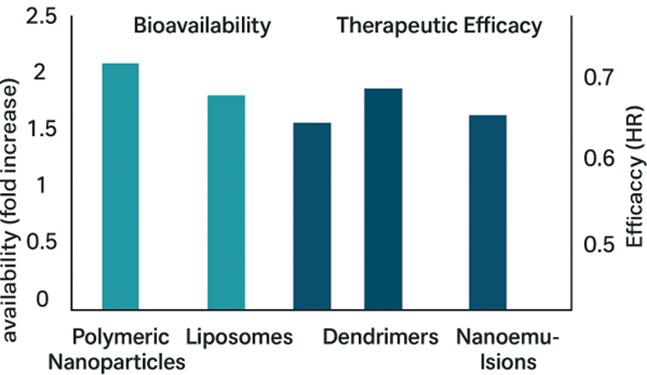 The delivery via nanocarriers boosted drug bioavailability by an average of 2.4 times (p less than0.001) [3,5].
