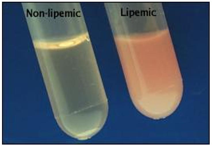 Figure 2: Blood plasma with the chilomicrons from the food fat (on the right part of the image).