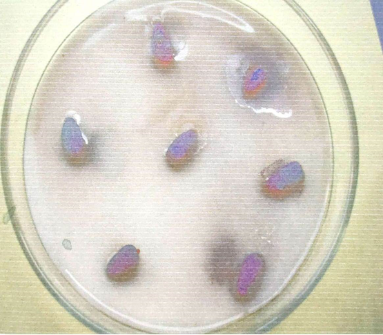 Starting to make use of the seed component manufacturing method a sample of sunflower seeds was further analysed to determine the presence of seed-borne fungus in various regions of the seeds. Twenty-five seeds from each sample were immersed in sterilized distilled water in test tubes for 24 hours before being dissected aseptically into seed coat (testa and tegmen), embryo and endosperm. At 27±2°C, these components were platted on blotter paper for 7 days. After 7 days, the number of fungus linked with these seed components was counted (Habib et al., 2007). For this purpose,84 seeds were sown in 12 Petri plate @ 7 seeds per plate. These 12 Petri plates were divided into 4 sets. These plates were kept under 4 different incubation temperature i.e, 15°C, 20°C, 25°C and 30°C individually. These plates were kept as such for 10 days and then data was recorded.