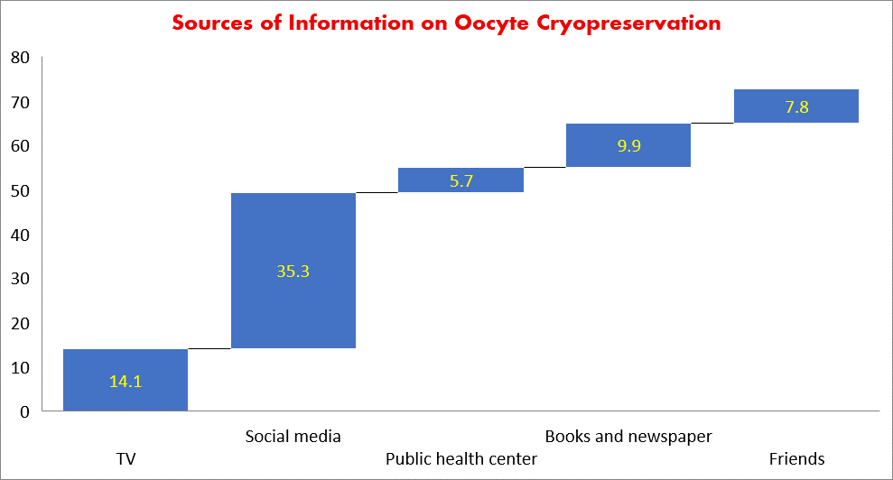 Regarding sources of information about OC, the study’s findings highlighted that social media and TV were the most common sources of background on OC it presents (35.3% and 14.1%), respectively. This finding is consistent with Mohamed et al. (2023), who studied the “Effect of Educational Program on Knowledge and Attitude of Female Students Regarding Oocyte Cryopreservation” and showed that the primary sources were the internet and television (30.8% and 31.1%), respectively.