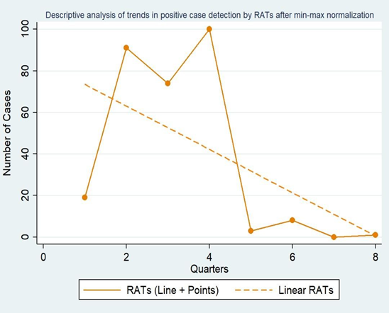 Figure 6: Description analysis of trends in positive case detection by RATs after min-max Scaler normalization.