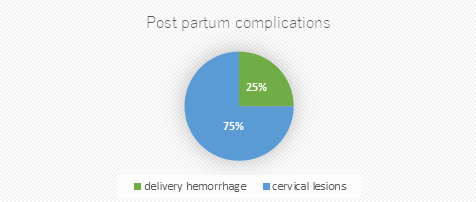 Postpartum complications were dominated by hemorrhagic delivery (75 Percentage) followed by cervical lesions (25 Percentage).