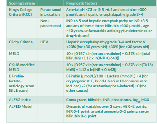 Table 4: Scoring systems in patients with ALF for emergency liver transplantation.