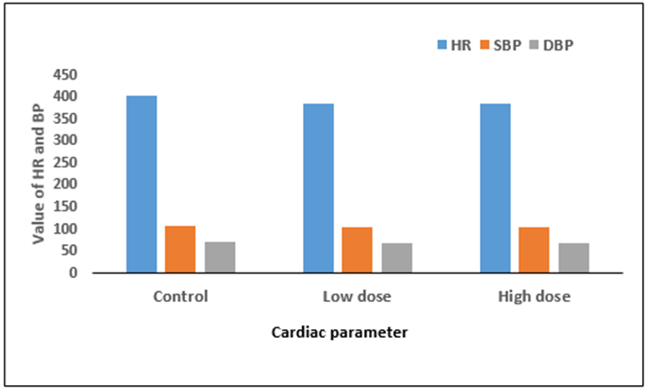 Table 3: Table 3 shows the heart rate, systolic and diastolic blood pressure of high dose groups.