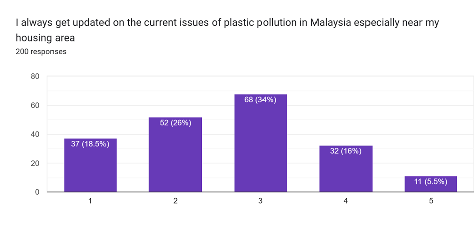 Sixty-eight respondents fairly agreed to stay updated on the current issue of plastic pollution especially near housing area which this could be that there is a little to no media coverage on the daily update of the plastic pollution in every area.
