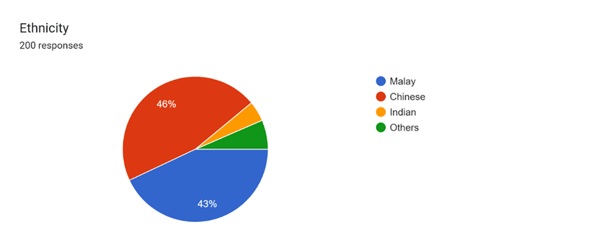 From the pie chart, we can conclude that both Malays and Chinese almost reached half of the number of respondents.