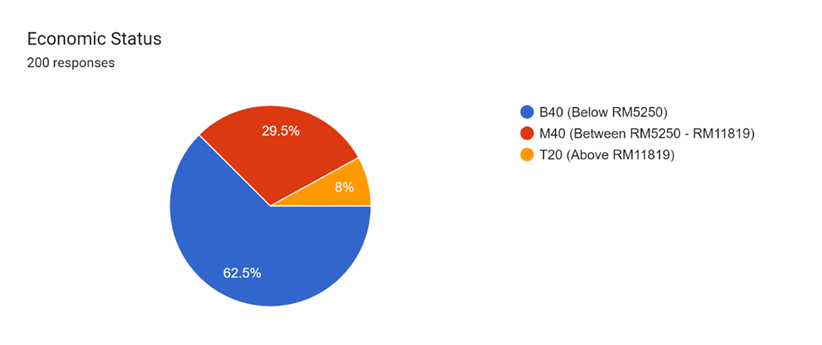 Three of the economic statuses were categorised in the questionnaire and 62.5% of respondents were under the category of M40 status.