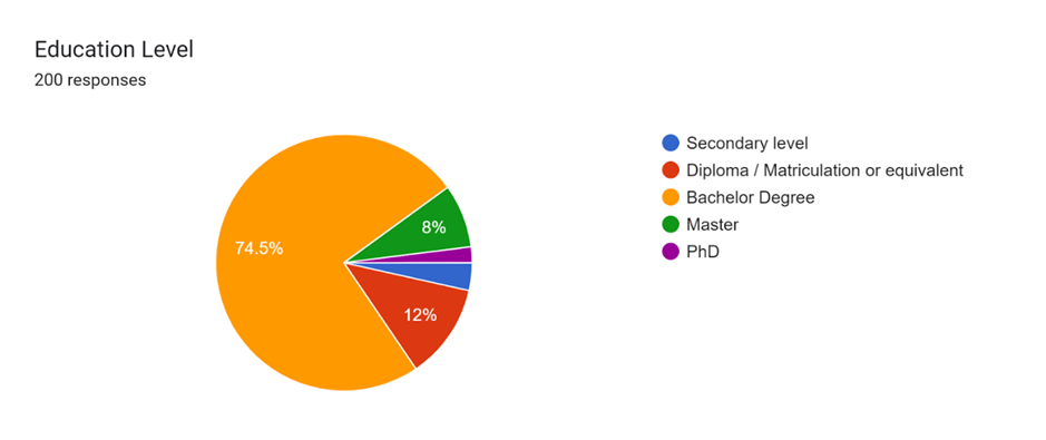 The educational level of the respondents is the highest at bachelor level whereas the lowest number of respondents falls in the category of PhD level.
