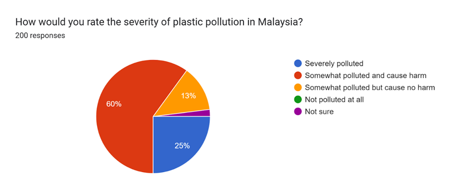 More than half of the respondents voted that plastic pollution in Malaysia is somewhat polluted and causes harm to the community and environment while a tiny percentage of respondents are not sure about the condition of plastic pollution in Malaysia with 2%.