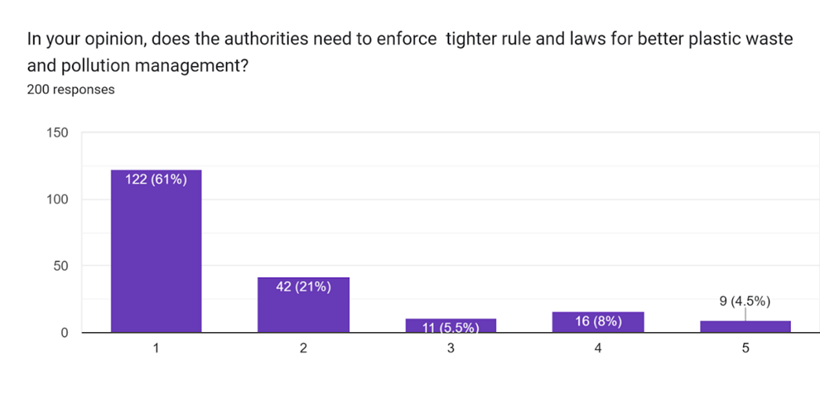 Figure 14: Bar chart showing the percentage of respondents’ answer whether the authorities need to enforce tighter rules and laws for better plastic waste and pollution management?