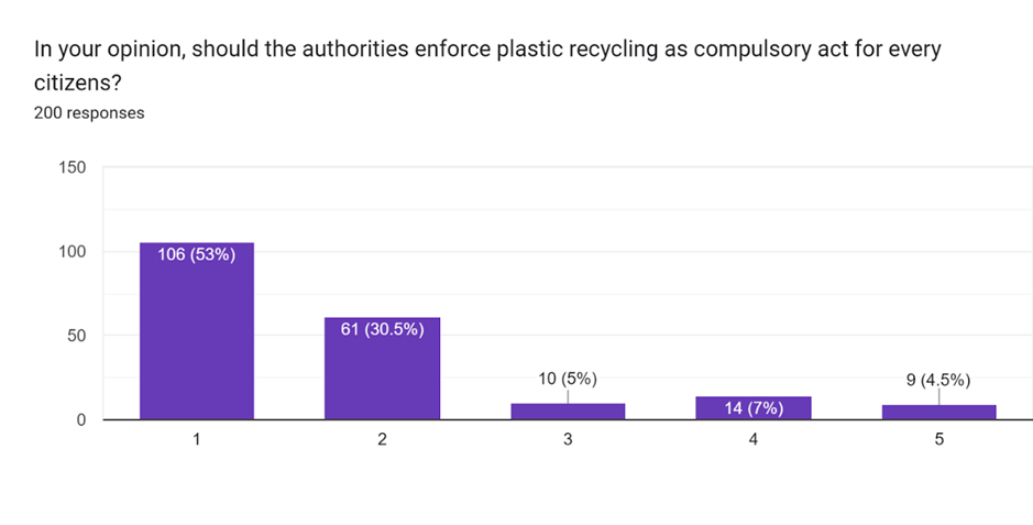 Figure 15: Bar chart showing the respondents’ answer whether the authorities should enforce plastic recycling as a compulsory act for every citizen?