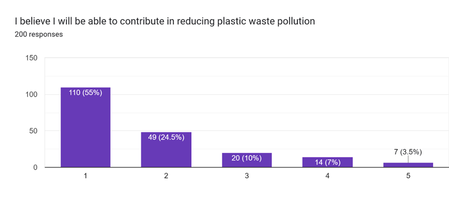 Most respondents believed that they would be able to contribute to reducing plastic waste pollution by starting to stop using plastic bags in daily use with 110 respondents who strongly agreed.