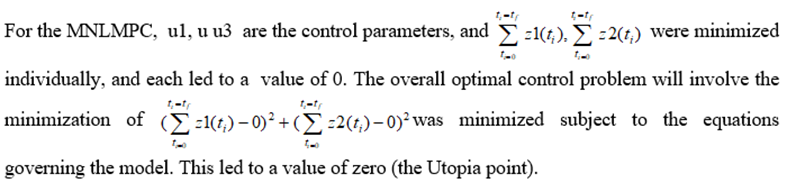 Sridhar (2024) [20] demonstrated that when the bifurcation analysis revealed the presence of limit and branch points the MNLMPC calculations to converge to the Utopia solution. For this, the singularity condition, caused by the presence of the limit or branch points was imposed on the co-state equation (Upreti, 2013) [21].