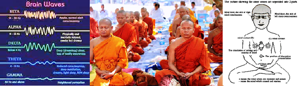 Brain generates beta waves when it is actively engaged in mental activities. Beta brain waves have a relatively low amplitude and are one of the fastest of the five types of brain waves. Only gamma waves are faster. Beta's frequency varies from about 14 to 35 Hz. Beta waves remain as normal thinking state. It reflects the active thought processes that brain waves experience from day-to-day life. Thus, in the meditation stage/process body get controlled by beta waves, as it functions in the world, to think logically, solve problems and confront whatever is happening out there.