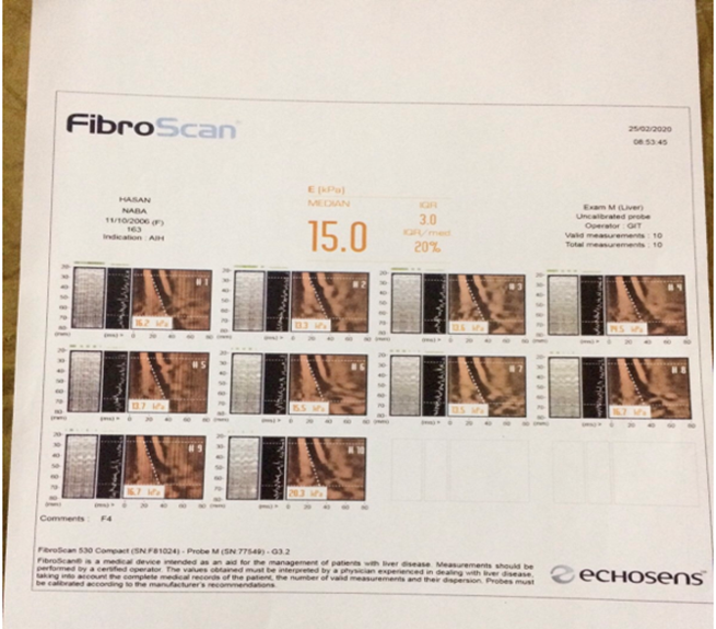 Wilson Disease is a serious disease that can conduct to multiple hepatic outcomes, including active chronic hepatitis. Owing to the absence or malfunction of P-type ATPase ATP7B transporting copper, its etiology relies on the defective incorporation of copper into apo ceruloplasmin. Symptoms differ, usually either hepatic or neurological at the time of diagnosis, depending on the main affected organs. The epidemiological profile consists of patients between the ages of 5 and 35, although there have been records of younger and older cases. Low ceruloplasmine levels are seen in most patients with neurologic WD, but about half of Wilson's patients with liver disease may be outside the normal range[10]. The presence of Kayser-Fleischer rings is found at diagnosis in about 50 percent of cases[11]. Also, the elevation of urinary copper considered as an effective marker of diagnosis. When the etiology is still uncertain, liver biopsy is considered. AIH, on the other hand, is a chronic disease causing progressive destruction of liver parenchyma. The pathological mechanism is still unclear, and cirrhosis normally results without appropriate care[12]. The AIH diagnostic criteria are the presence of autoantibodies, hyper gamma globulinaemia, Aminotransferase and negative viral marker elevation. Unlike WD, AIH patients typically respond well to immune suppressor therapy, which precludes liver transplantation [13]. In literature, a few instances of similarities have been identified between these two diseases. Cases of WD and positive autoantibodies of two patients with liver disease have been documented by Milkiewicz et al. In their research, patients had a partial initial response to prednisolone therapy [14], unlike our case. Dara et al also mentioned a case where both AIH and WD characteristics were present. Their patient reached the scores for these diseases and was treated for all of them with a positive answer (azathioprine, prednisolone and d-penicillamine)[15]. AIH markers were also reported for acute hepatitis caused by WD, with generally bad results associated with delay in diagnosis. The role of autoantibodies in WD is still unknown; due to hepatocyte necrosis or even a concurrent display of both entities, it may be an early feature of its pathological process[16,17].For this reason, when faced with insufficient response to initial therapy, assessing AIH patients for WD can be life-saving[18]. In conclusion, whether it is due to primary Auto Immune Hepatitis and Wilson disease or Pencillamine sensitivity, further investigations are required. Lack of adherence was obvious especially when the patients start Zinc sulfate on Dec.2015, Due to Gastro intestinal side effects, poor adherence from the parents sides, especially a remarkable elevations in ALP levels was noticed and lead to Hepatitis exacerbations. When starting chelation therapy (D-penicillamine) on july 2016, there was a minimum decrease in ALP levels and cholangitis were observed. During 2017,patient start Zinc Acetate, she was doing well. Later in 2018, there was a significant worsening in ALP levels and increase in the Gamma globuline levels and LKM (+ve). Patient started Prednisolone (5 mg.),Azathioprine(50 mg.) Zinc Acetate (150 mg /D.) later on 2019, a cirrohis were shown on Feb.2020.Patients non adherent on medications or dietary copper contents leads to worsening in clinical presentations and even death. Therefore, adherence has an extremely important role for the long- term success of treatment. Failure to adhere to lifelong therapy can lead to substantial progression of WD- associated liver disease and/or liver failure, the latter requiring liver transplantation. A significant clinical appearance closely resembles autoimmune hepatitis, children, but also young adults, in particular (AIH). This is a chronic inflammatory liver disease characterized by increased serum aminotransferases, hyper gammaglobulinemia, non-specific involvement of autoantibodies (microsomal antibody of the liver kidney, LKM ,anti-nuclear antibody, ANA; smooth muscle antibody, SMA;), hepatitis interface histology, and immunosuppression response[19]. As there is no single pathognomonic function, a rating system that has been revised and modified allows the diagnosis of AIH. Classic AIH can have a chronic or acute appearance[20,21].Significantly, WD's obvious simple acute hepatitis proved to be close to acute autoimmune hepatitis. Several studies record a pediatric WD clinical appearance close to that of AIH[25-28,29,30]. Because of the early cases of WD that clinically mimic autoimmune hepatitis[22-24]. In others, WD was misdiagnosed as AIH, and treated, albeit inadequately, as AIH. For example, in adult girls, an 8-month history of jaundice, ascites, hyperglobulinemia, positive ANA, hepatitis device, and liver biopsy cirrhosis demonstrated improvement in corticosteroid therapy .But WD screening findings a month later showed positive results with low serum ceruloplasmin, increased urinary copper and 385 μg/g dry weight liver copper. D-penicillamine was initiated and corticosteroids, she becomes clinically stable and tapered off [25]. ANA-positivity (type 1 AIH) is more common than LKM-positivity(type 2 AIH) in AIH-like WD, but this latter pattern may occur. Since acute liver failure due to AIH can be difficult to diagnose, acute liver failure presents major diagnostic problems. A similarly non-descriptive clinical picture of acute liver failure may be present in pediatric patients with WD, not the traditional ALF-WD picture. Initially, a 17-year-old girl with acute liver failure initiated a corticosteroid investigation focused on clinical and histological features of AIH in the midst of widespread IgG and negative autoantibodies. Clinical decline was responsible for urgent liver transplantation. Explant histopathology was consistent with WD; baseline 24-hour urinary copper excretion was diagnosed with 10,322 μg/24 hours(162.6 μmol/24 hours)of urinary