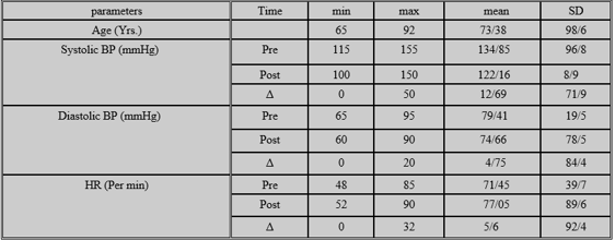 Patients over 60 years show higher baseline systolic blood pressure levels and upper mean change than younger subjects. Aging is also associated with decreased response to beta-adrenergic drugs and increased parasympathetic tone, which decreases cardiopulmonary and baroreflex reflexes (26, 59).