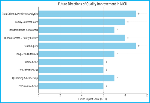 The future direction of Quality Improvement (QI) in Neonatal Intensive Care Units (NICUs) is evolving rapidly, driven by technological advancements, data analytics, patient-centered care models, and a growing focus on health equity and safety. Here are the key emerging trends and future directions: