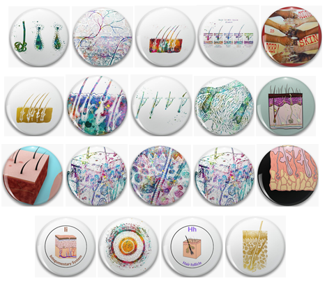 Figure 10. Thematic badges dedicated to the structure and histology of human hair.