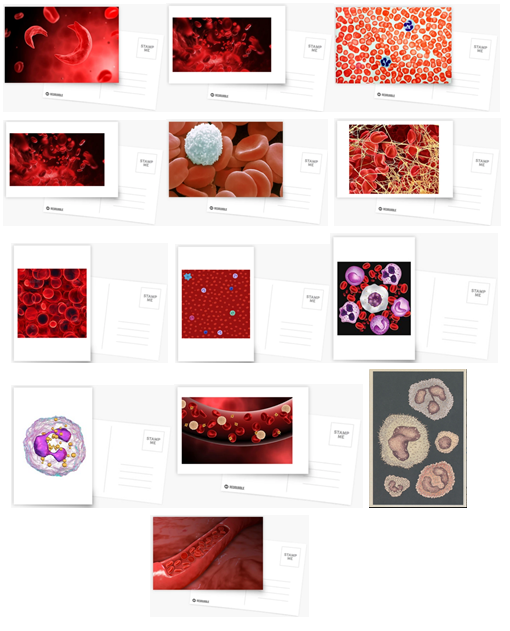 Figure 5. Human blood cells reflected in the phylocarty on postcards.