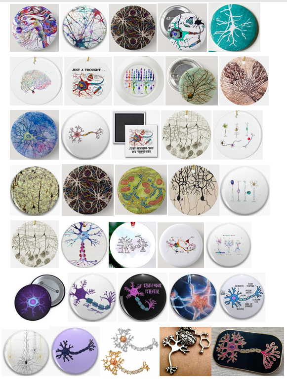 Figure 6B. A selection of thematic badges and broshes depicting nerve cells