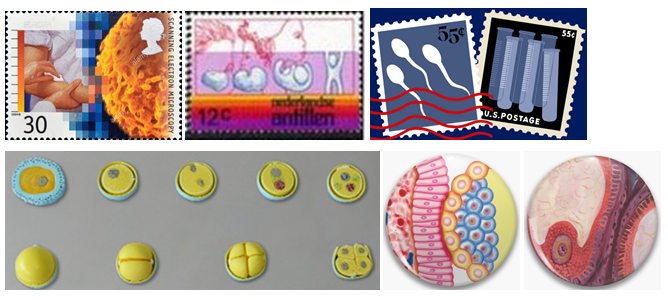 Figure 7. A selection of a number of collection materials, with images of an egg cell at different stages of its development and a sperm cell.