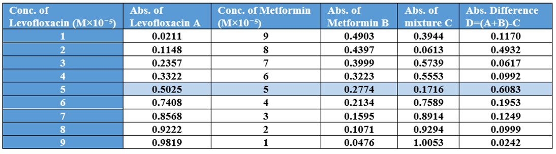 Table 4. Values of Jobs Plot of Levofloxacin and Metformin (12):