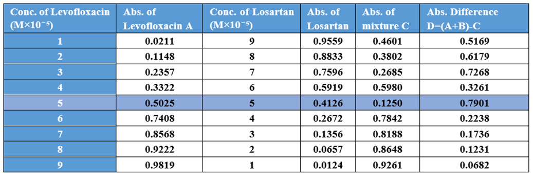 Table 5. Values of Jobs Plot of Levofloxacin and Losartan: