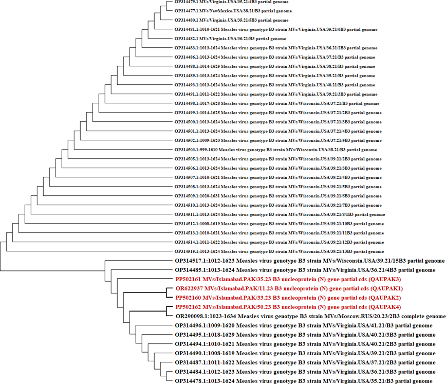 Keywords: measles; epidemiology; nucleoprotein gene; phylogenetic analysis; b3 genotype; pakistan