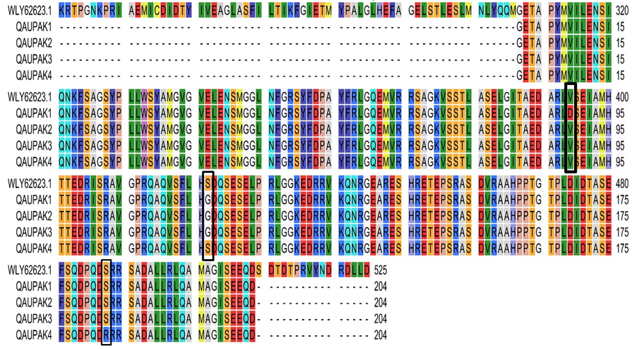 Figure 3: Amino acid sequence information of query sequences (QAUPAK1, QAUPAK2, QAUPAK3, QAUPAK4) w.