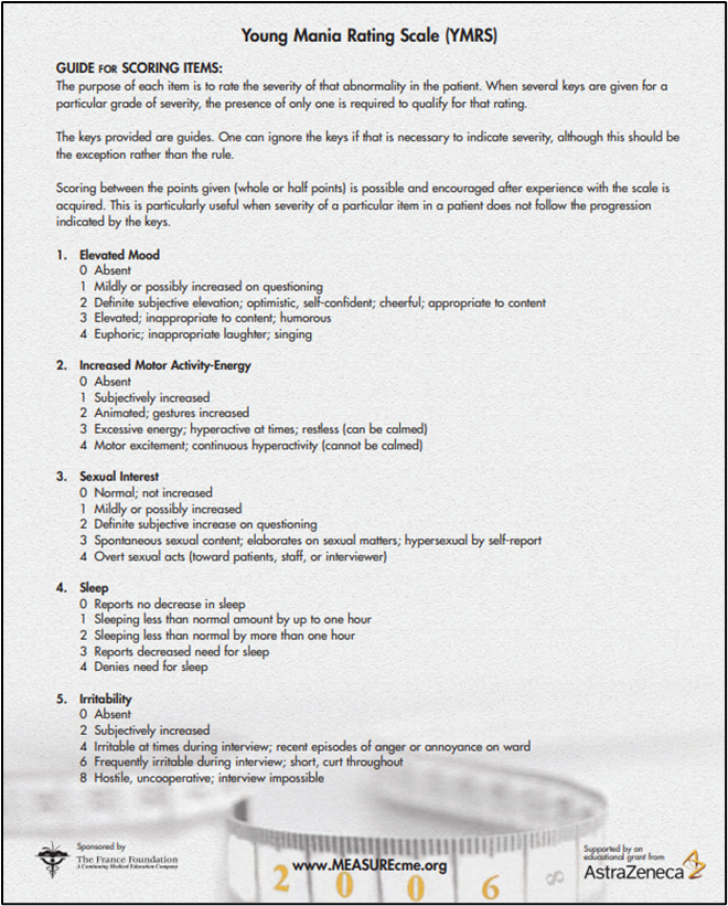 Figure 1: Figure 1 showcases the Young Mania Rating Scale used to determine the severity of mania in a patient with bipolar disorder (3).