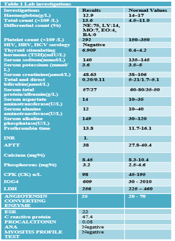 The differentials considered were: Pyomyositis secondary to Bacterial/Tuberculosis/ atypical mycobacterial infection or Primary malignancies like soft tissue sarcoma/cutaneous lymphoma/ Metastases to muscle and infiltrative diseases like Sarcoidosis/Amyloidosis/ IgG4 disease.
