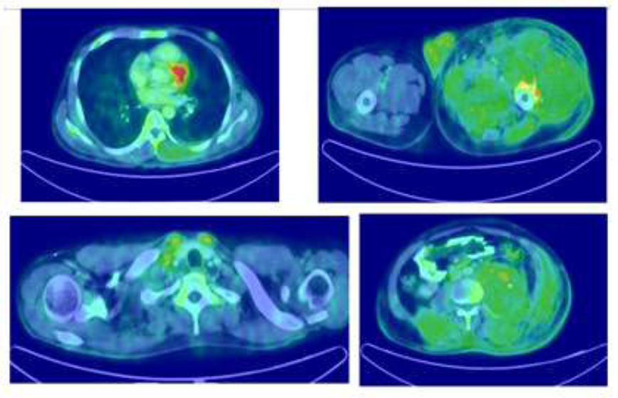 Figure 2b: FDG PET CT showing involvement of the left thigh muscle and a nodule in