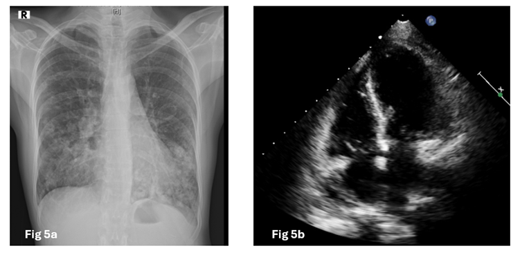 Figure 5a: (Chest radiograph) 5b (Transthoracic echo) showing no signs of pneumopericardium.